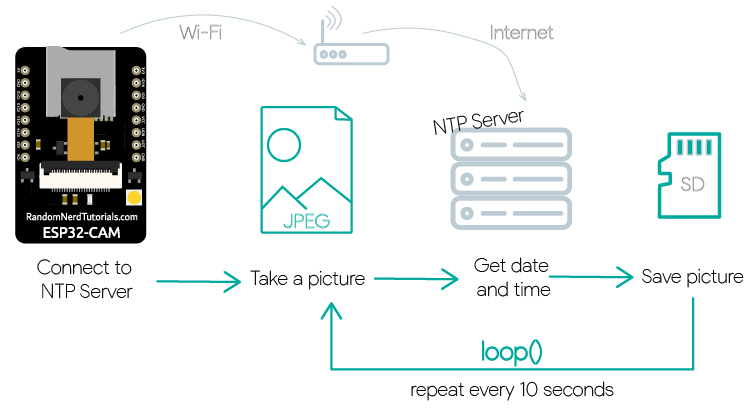 This project shows how to take a picture with the ESP32-CAM and save it to the microSD card. We include the current date and time on the filename. This is useful because each picture will have a unique filename, which means no issues with overwriting existing files; you’ll know when each photo was taken; and it will be easier to organize or retrieve your files later on.